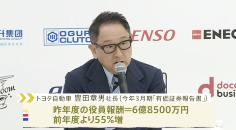 関連:トヨタの豊田章男社長の役員報酬6億8500万円で55%増 業績好調等で | TBS NEWS DIG
