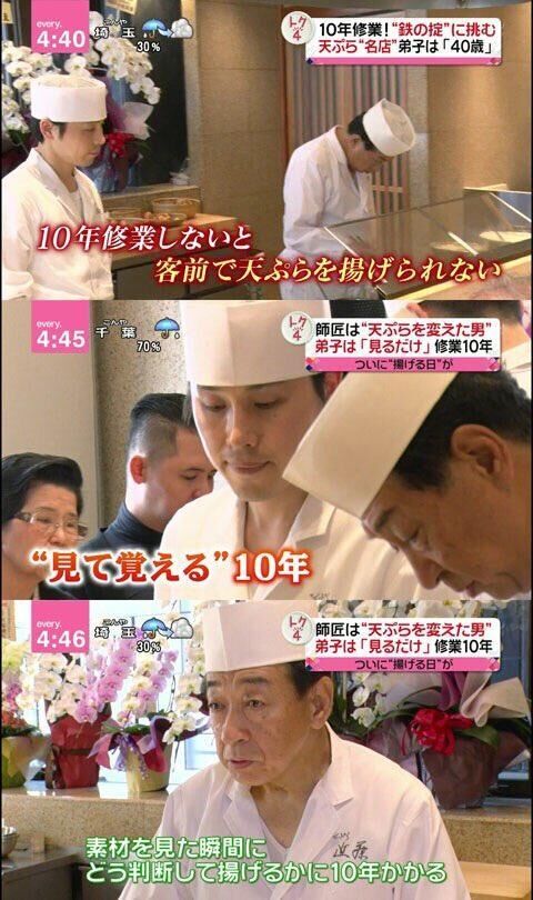 【画像】てんぷら職人見習い、「見て覚える」修行に10年も費やしてしまうww