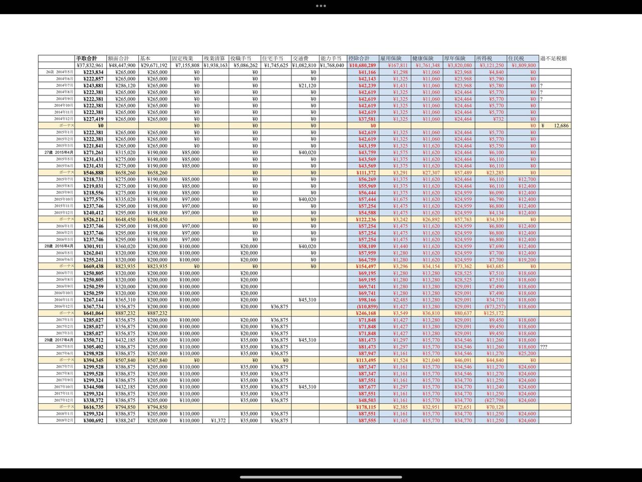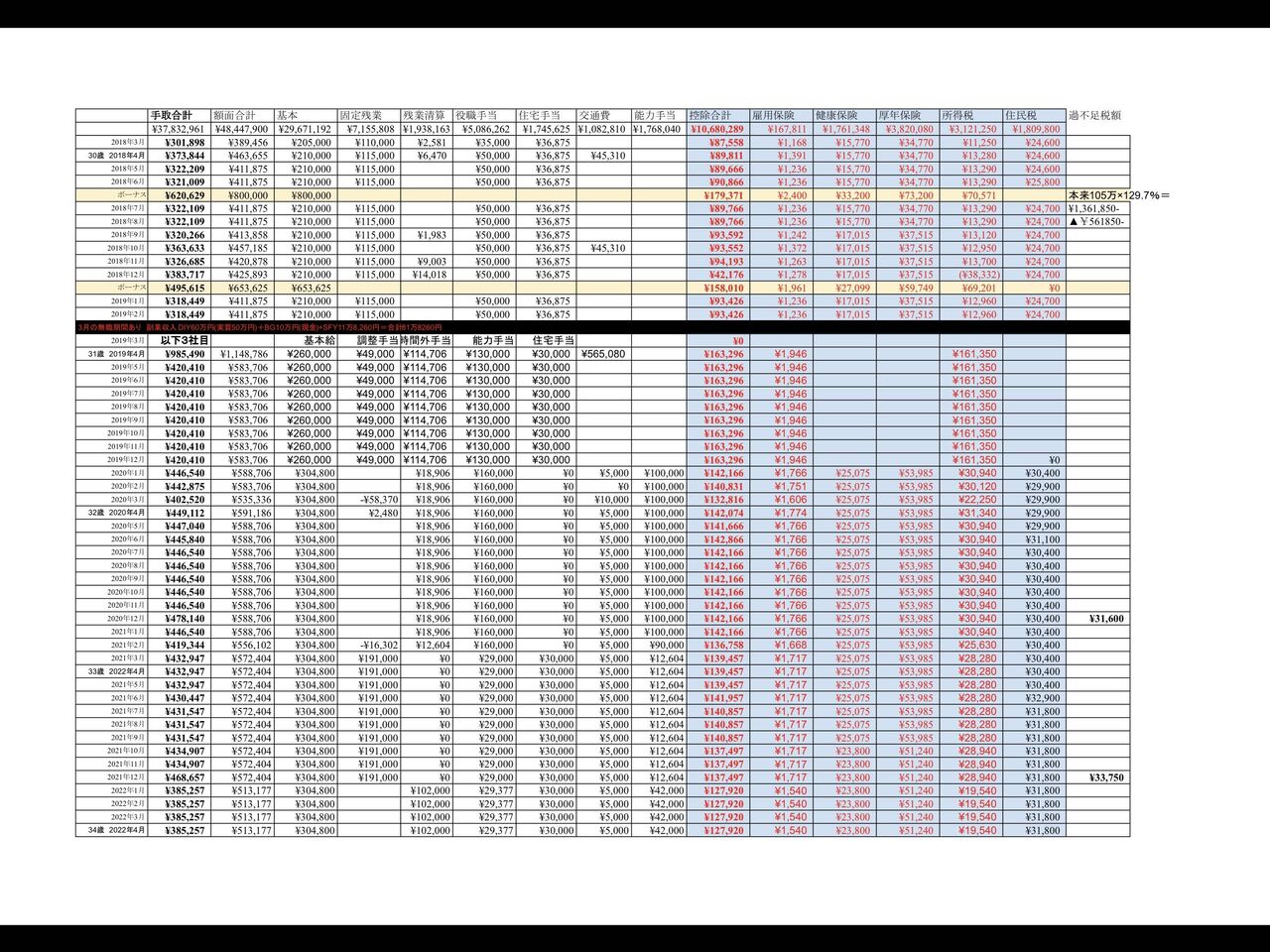 【画像あり】ワイの26歳(年収320万)~34歳(年収700万)までの給与明細の内訳をまとめてみたwwwwww