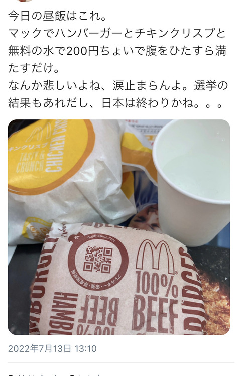 【絶望】貧困民「200円で腹一杯にした、涙が止まらない」