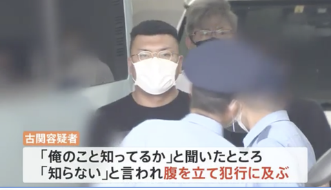 警視庁によりますと、古関容疑者は一緒にいた知人の男が工事用の三角コーンを投げていたのを男性に注意され、「俺のこと知ってるか」と聞いたところ「知らない」と言われ、腹を立て犯行に及んだということです。