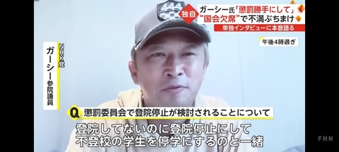【正論】ガーシー「登院してないのに登院停止にするのは不登校の学生を停学にするのと同じ」