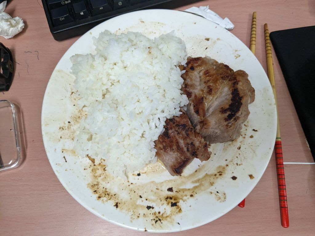 【画像】ワイの昼飯のポークステーキ・プレート、美味すぎる