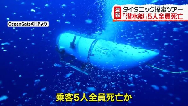 米沿岸警備隊の発表によれば、潜水艇が行方を絶ったのは潜水開始から約1時間45分後で、予備の酸素は4日分だけ。海から何かを叩くような音が捜索機のソナーで複数回感知されたようですが(潜水艇は外側から鍵がかかるため内側から開ける術はない)、
