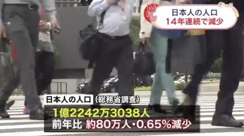 日本の人口 日本人は14年連続減少 外国人は10.7%増加