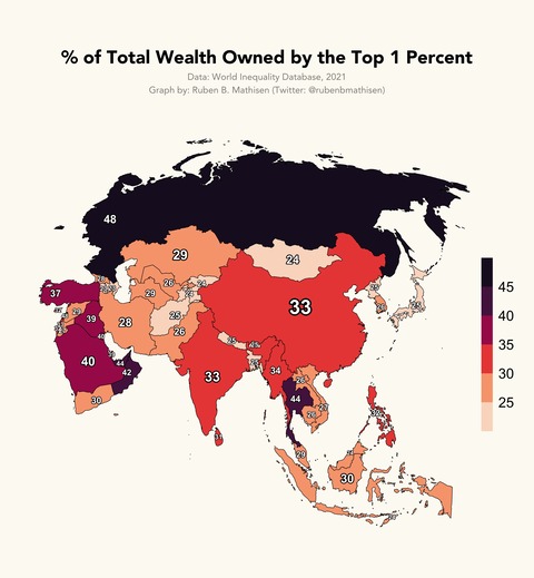 【画像あり】「1%の富裕層が国全体の富の何%を持ってるか」を図にしたものがやばすぎるwwwww
