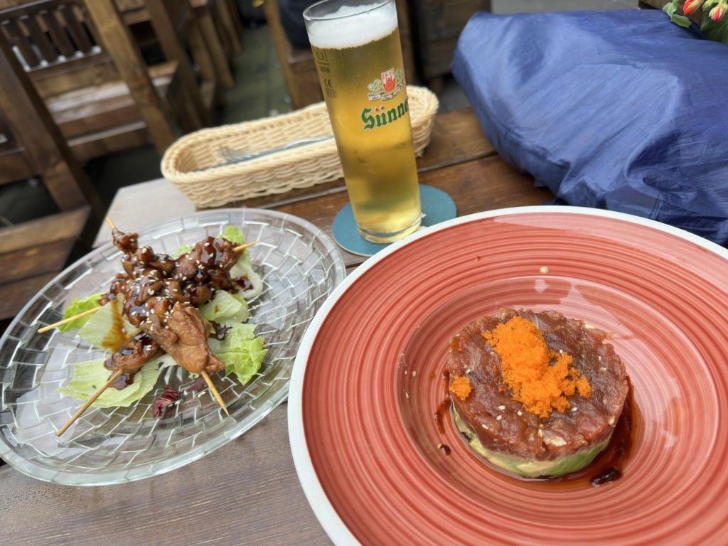 マグロタルタルと焼鳥食べる
