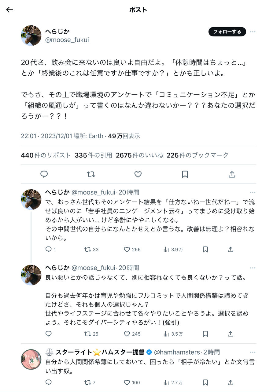 【画像あり】最近の若手社員、わがまますぎる…飲み会に来ない癖に「コミュニケーション不足」を嘆く