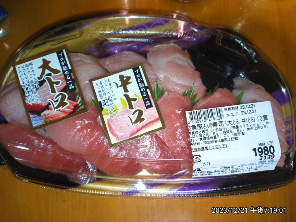 お寿司かってきたやでー