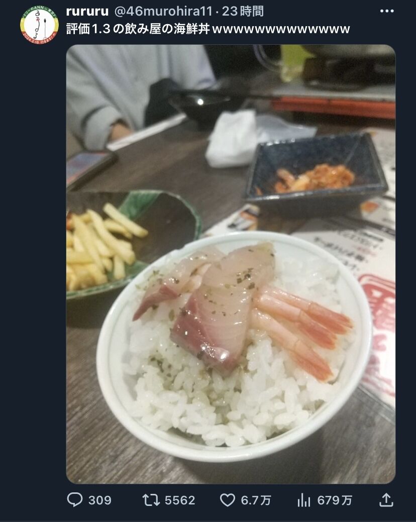 【悲報】☆1.3の海鮮丼、晒されるwwwwwwwwww