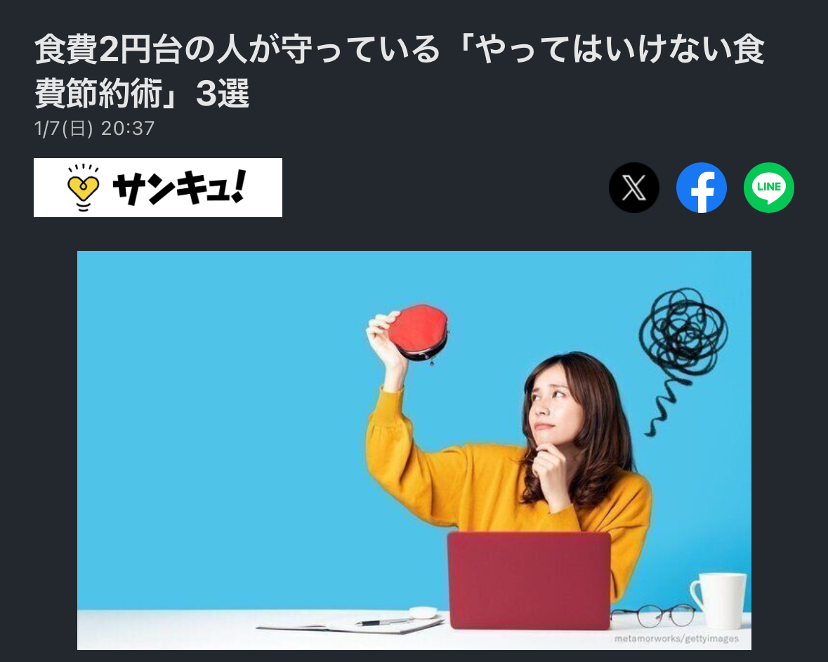 【画像】食費2円台の人が守っている「やってはいけない食費節約術」3選
