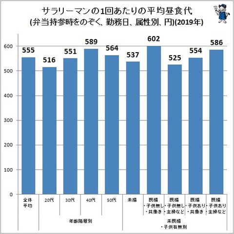 【画像】サラリーマンの平均昼食代は555円、低いねwwww