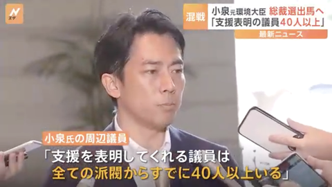 関係者によりますと、小泉氏は出馬に必要な推薦人20人を確保していて、周辺議員は「支援を表明してくれる議員は全ての派閥からすでに40人以上いる」と話しています…