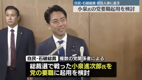【朗報】石破総理大臣、小泉進次郎を要職起用へ