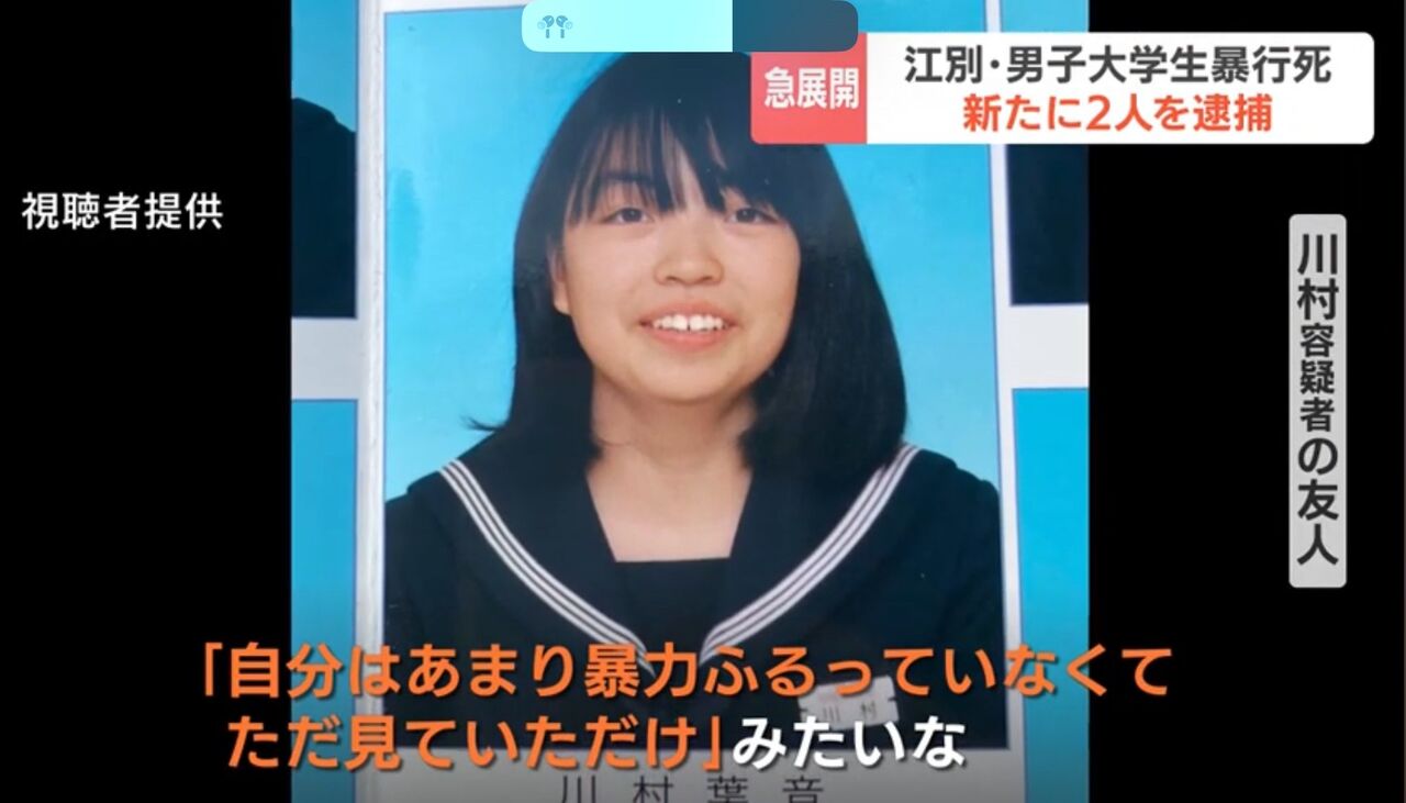 【画像】川村葉音容疑者(20)の卒アル写真wwwwwwww