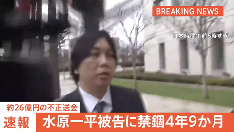 水原一平被告、禁錮4年9ヶ月