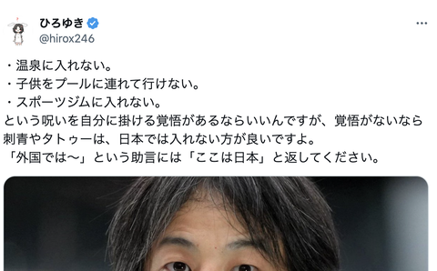 【正論】ひろゆき「温泉に入れない。子供をプールに連れて行けない。スポーツジムに入れない。という制限をかける覚悟がないなら日本でタトゥーは入れない方が良い」