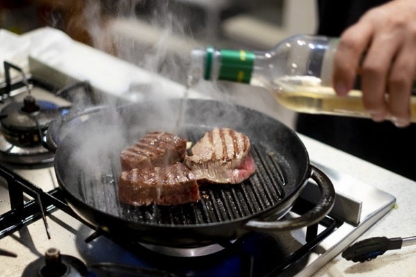 夕食:ステーキ225g、時々、卵とベーコンを追加