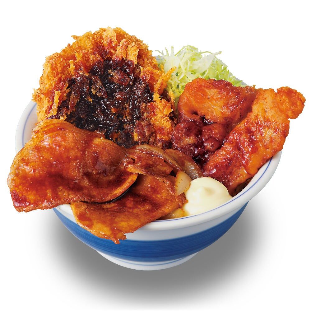 かつや、3種類の豚料理を盛り合わせた「豚DX丼」発売、とんかつ・焼肉・から揚げを一度に