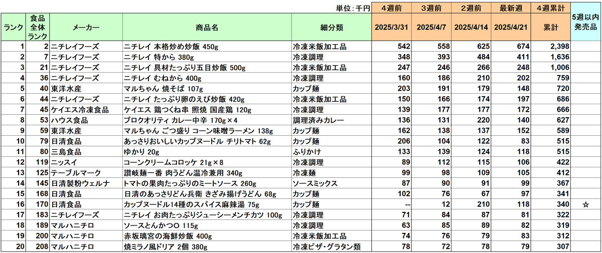 加工食品 売上ランキング/4月はニチレイフーズ「本格炒め炒飯」が2カ月連続1位