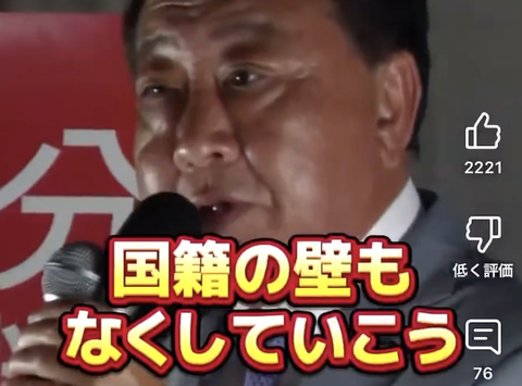 【悲報】立憲・野田代表「国籍の壁をなくしていこう!」