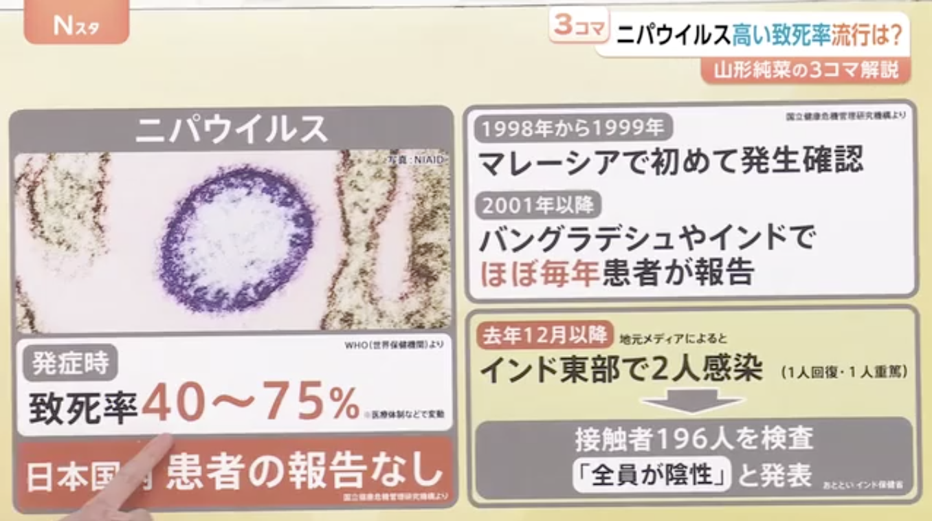 トレンド高い致死率「ニパウイルス」アジア各国で流行の懸念 ワクチン・特効薬なし…日本への流入リスクは?【Nスタ解説】